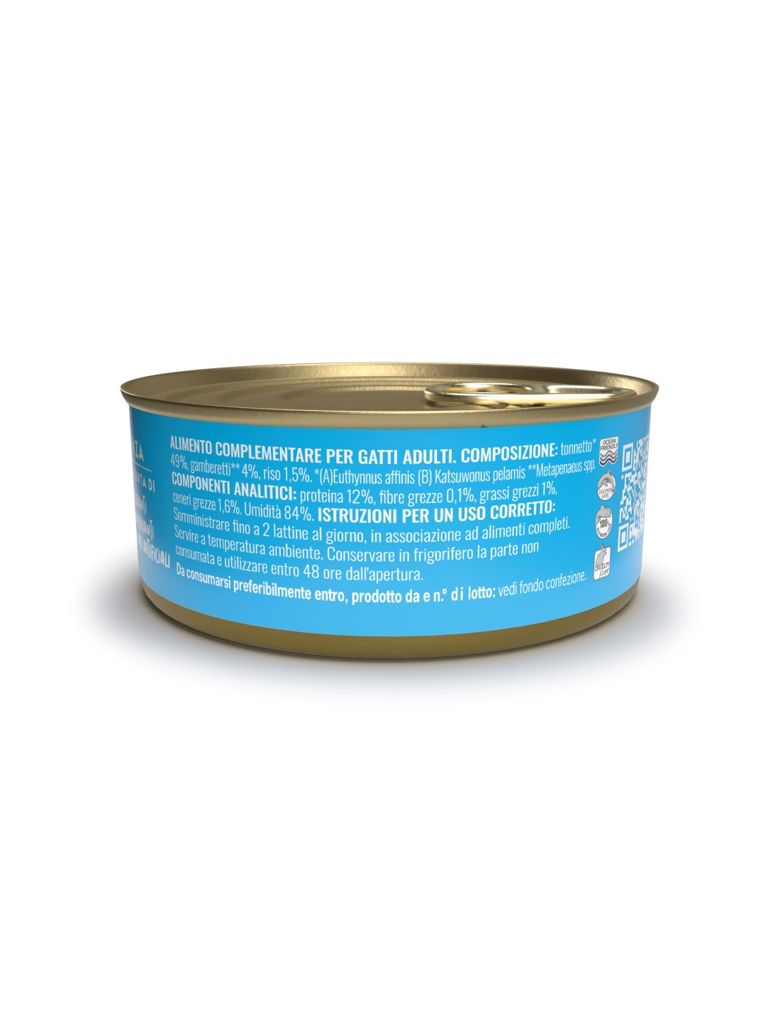 Thunfisch 49%, Garnelen 4%, Reis 1,5%.