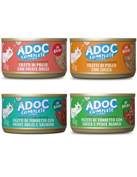 64 Lattine DA 85 gr ADoC Cat Gatto Cibo Umido per Gatti MIX VARIETY - Gamberetti...