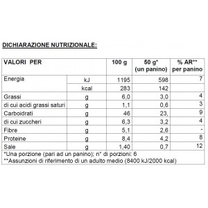 Ingrédients : farine de blé tendre type "0" , eau, 6% saccharose, 3% huile de tournesol, levure, graines