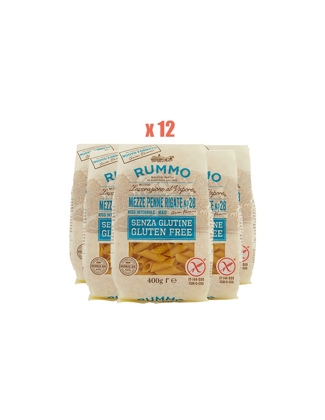 Pasta RUMMO Mezze Penne Rigate Sans Gluten n 28 - 12 Paquets de 400gr