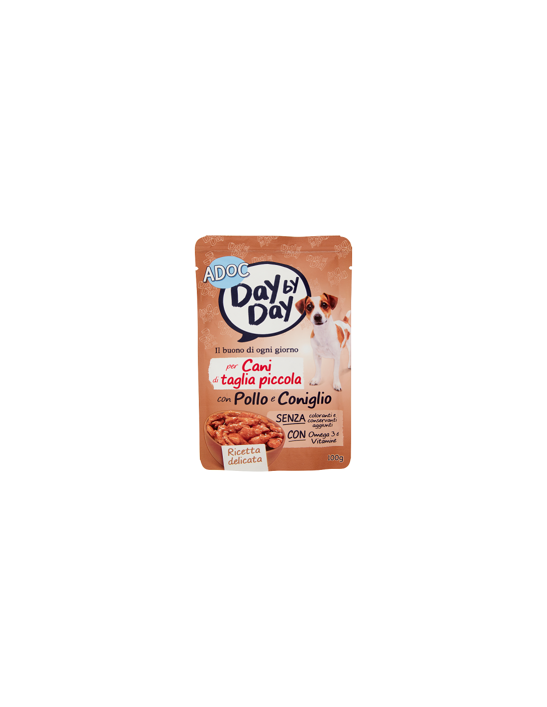 ADoC Day by Day è una linea di alimenti completi senza conservanti né coloranti aggiunti, cotti al vapore per conservare intatti quel gusto che li rende così appetitosi e quei principi nutritivi grazie ai quali chi li acquista è sicuro di dare al proprio cane o gatto un pasto completo, ed equilibrato. I prodotti Day by Day sono arricchiti con vitamine e Omega 3, utili a mantenere in buono stato la cute ed il mantello. La linea di prodotti per gatti raccoglie un’ampia scelta di varietà molto gustose e specifiche in base all’età e stadio fisiologico dell’animale. Inoltre alcuni di questi prodotti contengono materie prime/ingredienti certificati dall’organizzazione MSC che ne attesta la pesca sostenibile. I prodotti Day by Day per cani di piccola taglia sono presentati in tre ricette: ricetta delicata, saporita e con verdure dell’orto. Con Day by Day, il buono di ogni giorno!