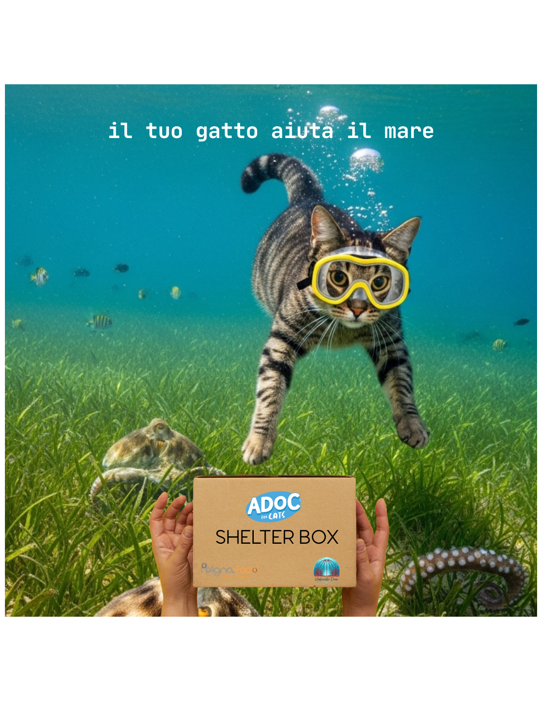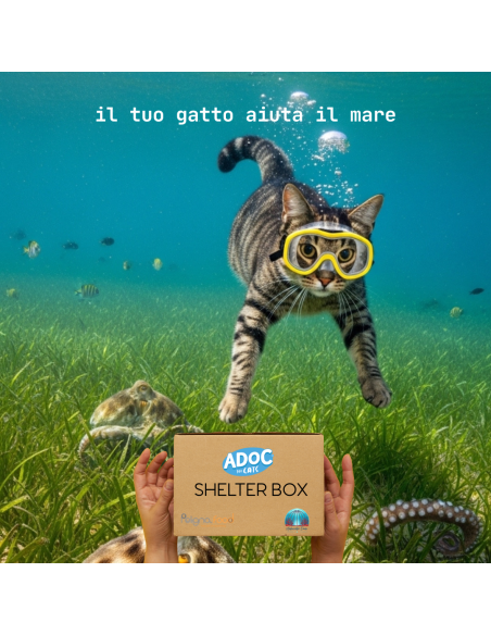 24 Lattine DA 85 gr ADoC Cat Gatto Cibo Umido per Gatti SHELTER BOX - Gamberetti Alicette Prosciutto Tonnetto