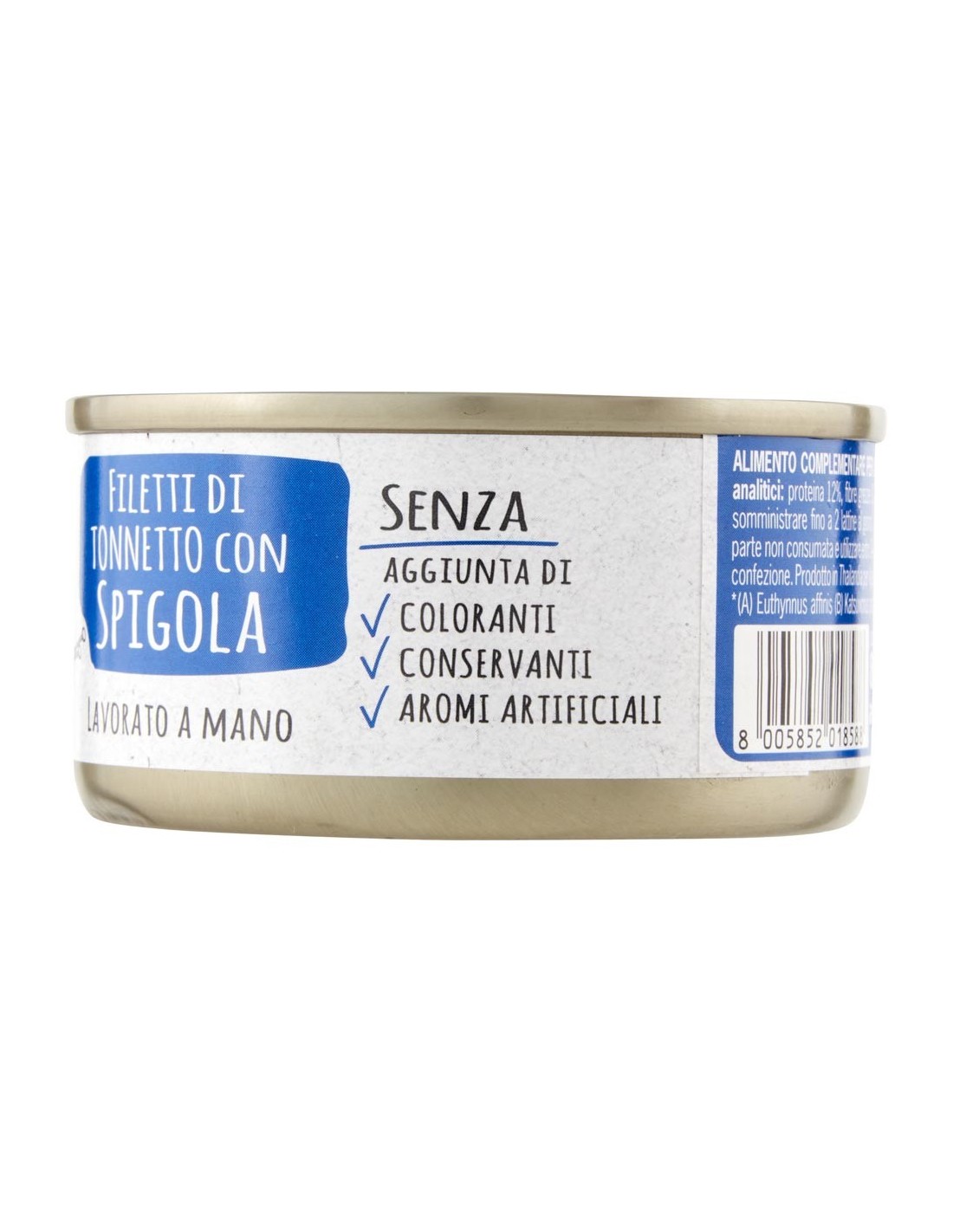 TONN. CON MANZO E TONN. CON PROSCIUTTOSenza aggiunta di coloranti, conservanti, aromi artificiali. Lavorato a mano. Cotto a vapore. 100% naturale.[ Gatto > Gatto adulto ]Alimento complementare umido per gatti adultiFormato con 4 lattine da 85g ciascuna, 2 gusto tonnetto con manzo e 2 gusto tonnetto con prosciutto. Entrambe con trancetti di tonno...