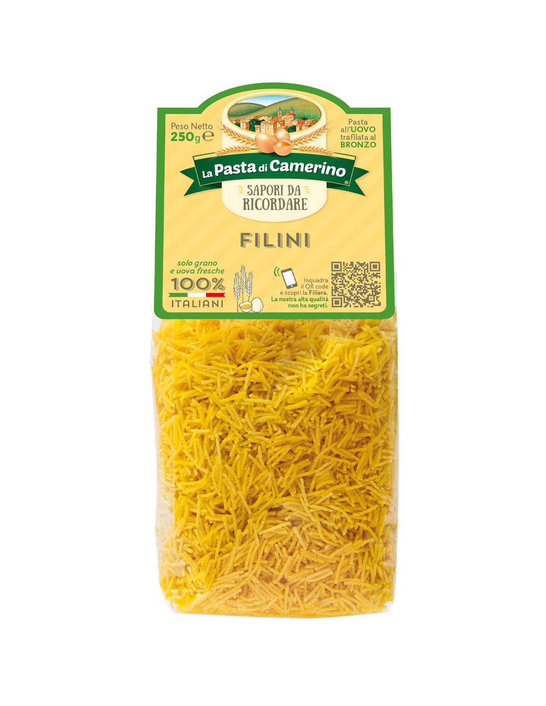 I Filini sono sottili nastri di sfoglia dorata capaci di trasportare tutta la magia della tradizione sulla tua tavola. Eleganti nella forma e raffinati nel sapore rappresentano una sfiziosa alternativa nella scelta delle pastine.